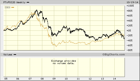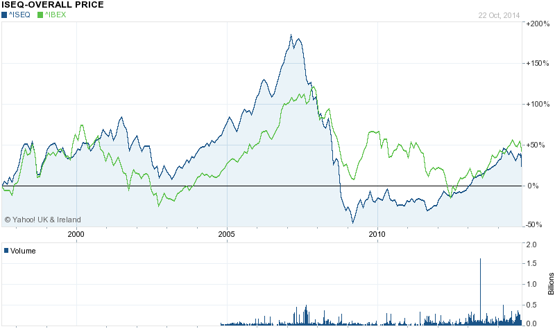 To begin, here is a ten year chart of the Portugese PSI20 vs Irish ISEQ Composite: –
