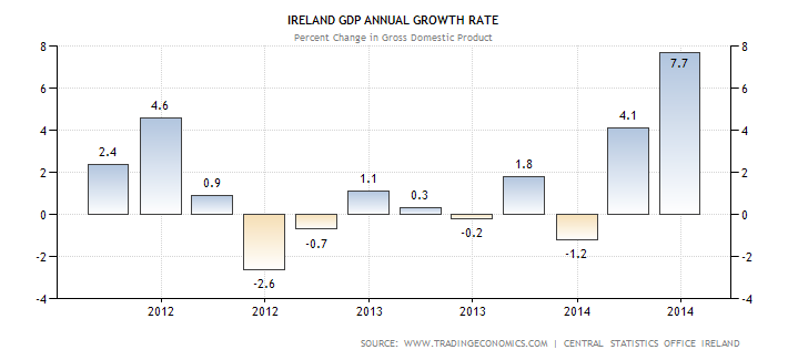 Unemployment rose from 4.2% in 2007 to 15.1% by early 2012. Between April 2009 and April 2010 a net emigration of 34,500 occurred – the first outward migration since 1989. Since 2012 Employment has risen by 70,000 – approximately a quarter of the jobs lost in the Irish depression – this suggests an output gap still exists. Ireland is a net importer of Oil – its recent decline, despite geo-political tensions, will help to flatter inflation figures.