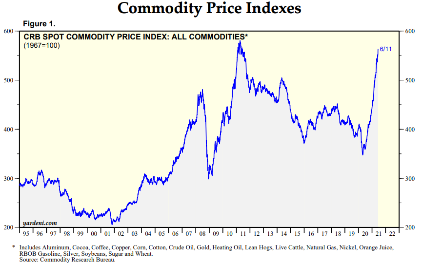 Similar patterns were evident in Steel and Copper, but also due to shortages and bottlenecks in the semiconductor supply-chain, which led a slowing of automobile production, in turn prompting a rise in the price of both for new and used cars.