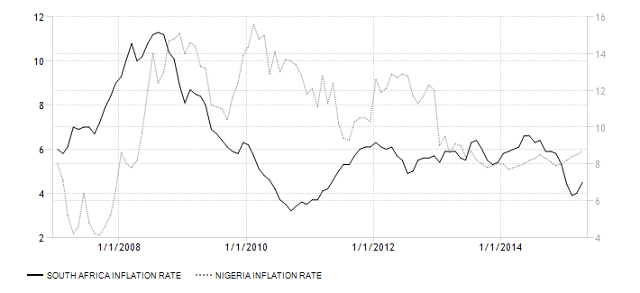 Source: Trading Economics, National Bureau of Statistics Nigeria and Statistics South Africa