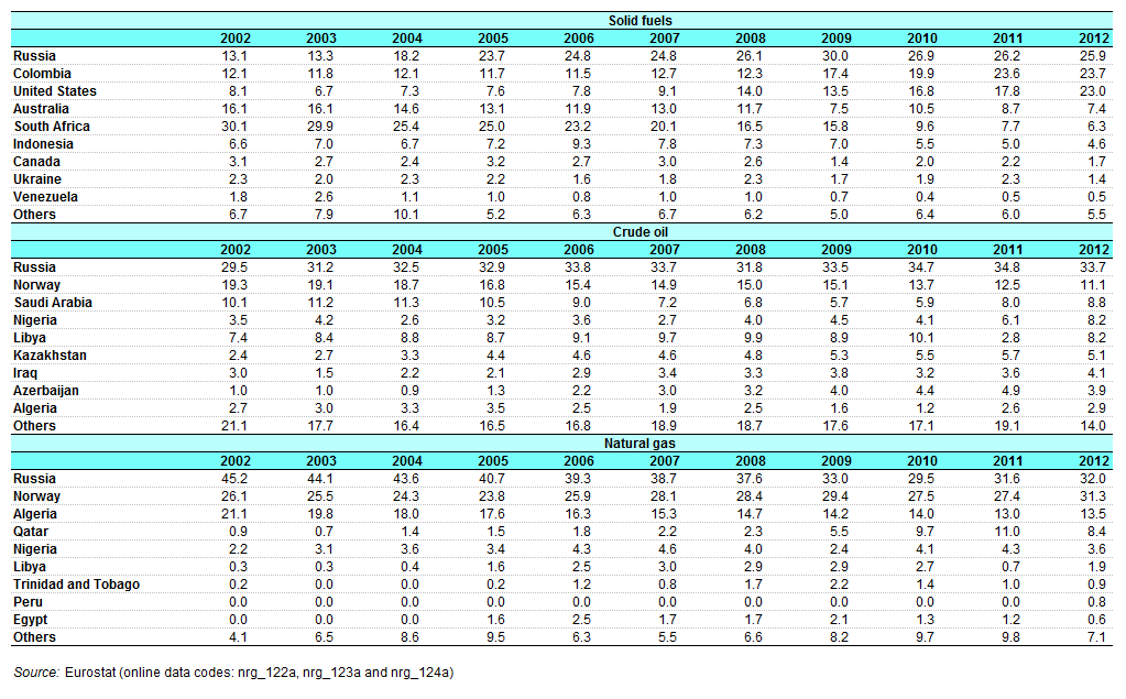 Main origin of primary energy imports - Source EuroStat