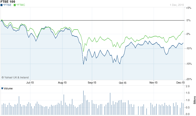 Here’s how the markets have evolved since the summer. Firstly the FTSE100 vs EuroStox50 and S&P500 – six month chart, at first blush, I was wrong, the FTSE  has underperformed EutoStoxx and the S&P:-