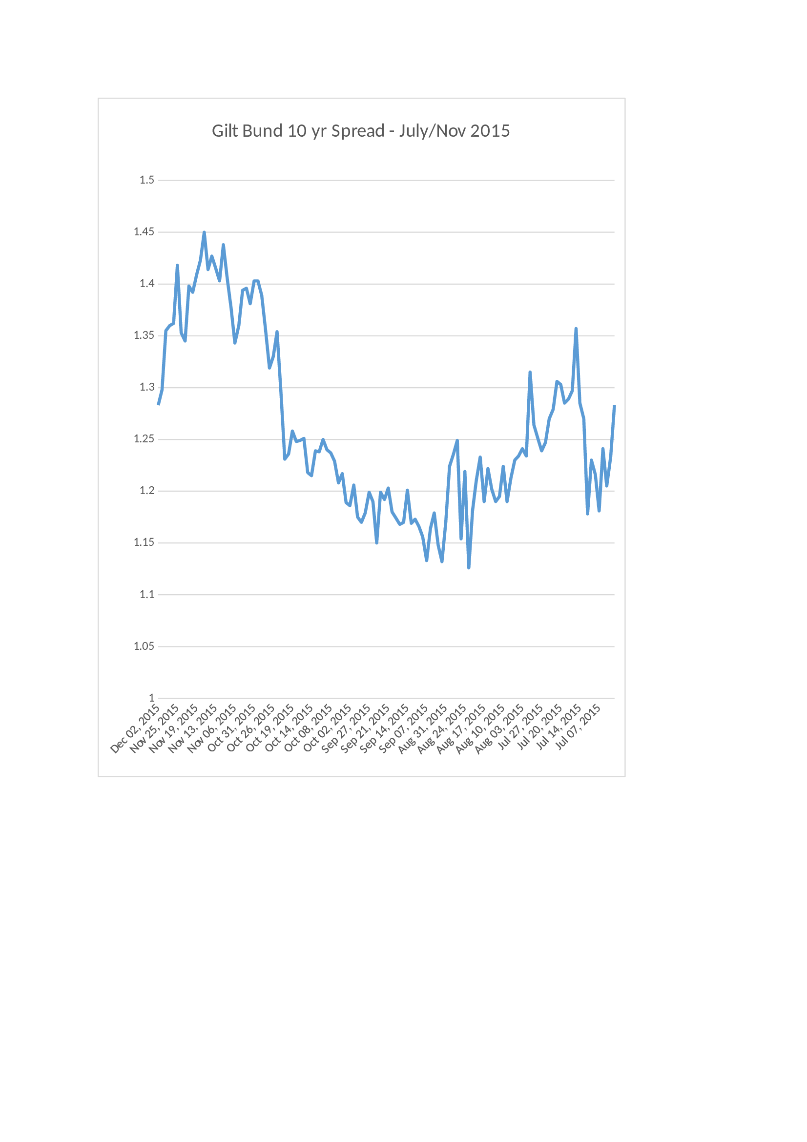 During the period since the beginning of July the spread between 10yr Gilts and Bunds has ranged between 112bp and 145bp reaching its narrowest during the fall in equity markets in August and widening amid concerns about European growth last month. UK Inflation expectations remain subdued; this is how the MPC – November Inflation Report described it:-